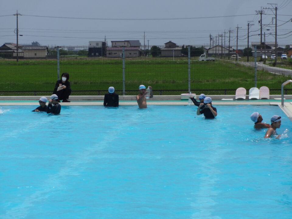 初めて泳ぐ子や久しぶりに泳ぐ子が多い中、先生の指示や指導をしっかり守り、安全に楽しく取り組むことができました。多くの子が水をあび、「気持ちがいい。」と言っていました。