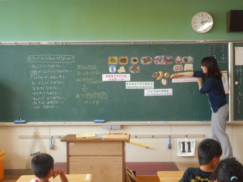 ホーム > 日々の活動の様子 食育の授業 栄養教諭の高木先生に来ていただき、食育の授業をしていただきました。6年は「食事のマナー」、4年は「かむこと」、1年は「好き嫌いしないで食べること」について、それぞれ学習しました。 タグ:2017年度 シェアする Twitter でシェア はてなブックマークに保存 LINE でシェア Facebook でシェア Pocket に保存 Feedly で購読 関連投稿 日々の活動の様子 ダンス体験 日々の活動の様子 野菜や稲の栽培 日々の活動の様子 国際プログラム2回目 日々の活動の様子 職員の研修 日々の活動の様子 春爛漫 日々の活動の様子 工事中 前の投稿 図書委員の活動 次の投稿 緑のカーテン