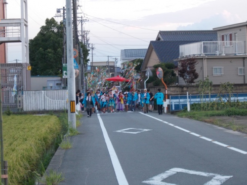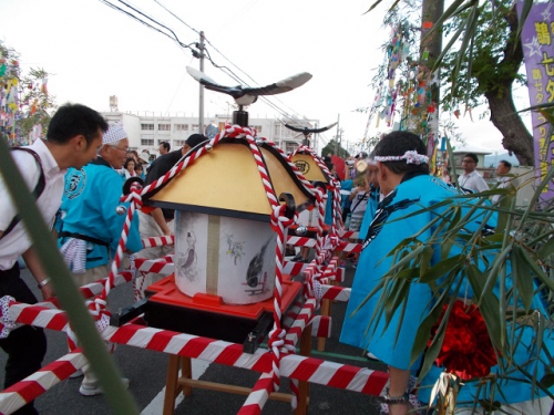 7日に予定されていた鵲七夕まつり実行委員会主催の「鵲七夕まつり」が、台風のため延期になり、昨日行われました。織り姫は小舟江町の八雲神社から、彦星は五主町の綿積神社から、それぞれ子どもたちの担ぐ「鵲鳥の神輿」とともに出発し、星合町の鵲橋で出会います。星合町の波て神社には笹飾りも飾られました。織り姫と彦星役は、6年生児童です。