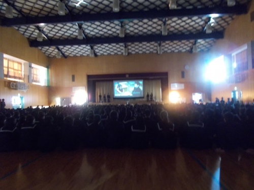 三雲中学校区人権フォーラムが開催されました。このフォーラムは、三雲中学校区の児童・生徒と教職員が人権尊重について考え、あらゆる差別をなくすために行動できる仲間をつくっていこうとする取り組みです。今日は、午後から小学校6年生と中学生が参加し、三雲中学校や松ヶ崎小学校の発表を聞きました。その後、グループ別の話し合いがありました。笑顔あふれる校区にするためにどうすればいいのかみんなで意見を出し合いました。フォーラム実行委員の子たちは、会の運営や進行を担いがんばってくれました。
