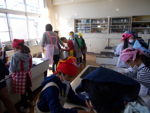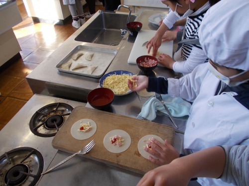 2年生が、ジルマさんに教えていただき、ブラジルの軽食「パステル」を作りました。餃子に似ています。食べた瞬間「おいしい。」という声が、子どもたちから一斉にあがりました。「簡単にできるから家で作ってみる。」という子もいました。ブラジルからのお友だちも大満足の様子でした。