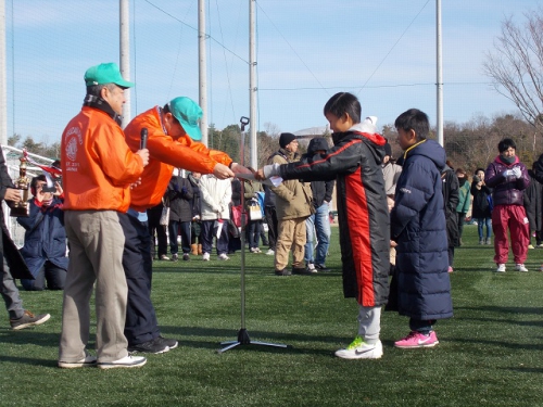 1月6・7日の2日間、松阪市総合運動公園において、松阪市小学校サッカー大会が開催されました。1日目は、本校は、徳和小学校と対戦しました。5-1で勝ちました。2日目は、港小学校と対戦しました。1点差で負けていましたが、試合終了寸前で、同点ゴールを決め、PKの結果、勝利しました。3試合目となる準決勝では、山室山小学校に、残念ながら0-2で敗れました。しかし松阪市で3位という立派な成績を残してくれました。選手のみんなの息の合った見事なプレーに感動しました。よく頑張ってくれました。保護者の皆様、応援ありがとうございました。