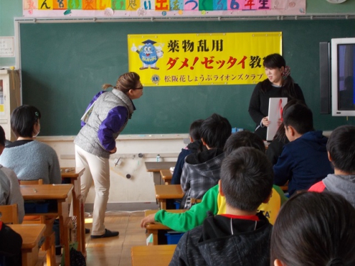 松阪花しょうぶライオンズクラブの6人の方々に来ていただき、6年生で、薬物乱用防止教室を開いていただきました。薬物は、たとえ1回だけの使用でも乱用になり犯罪であることや、薬物やたばこへの依存が身体に与える影響などを、クイズも交えながらわかりやすく教えていただきました。また寸劇を通して、薬物をすすめられた時の上手な断り方も教えていただきました。