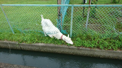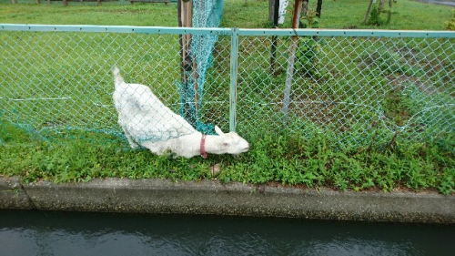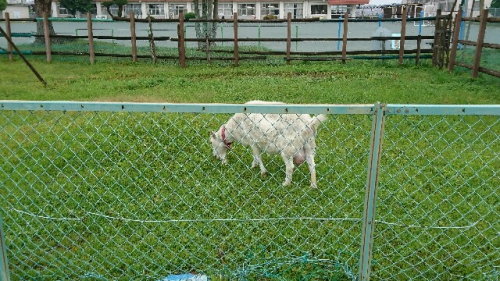 6月に入り、校庭や畑の草がよく伸びる時期を迎えました。かささぎの森も時々草を刈らなければなりません。メイカの牧場も気になるところですが、さすがにメイカの主食は草。周辺は草刈り機で刈ったようにきれいです。さらにフェンスの破れから首を伸ばして、水路の雑草まで朝食にしていました。メイカありがとう。