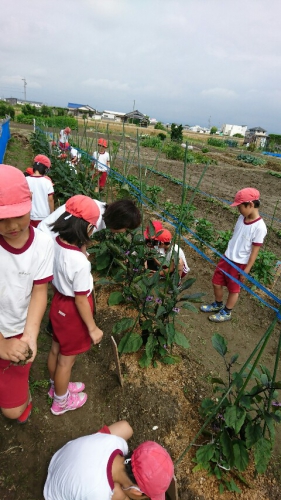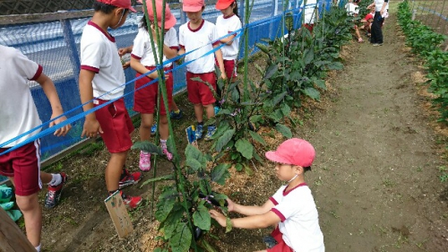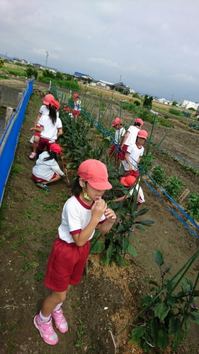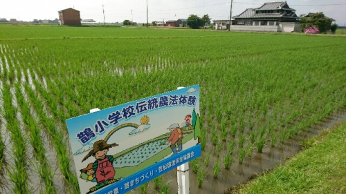 3年生が畑の手入れをしていました。なすの実が大きく育ってきました。どうやって食べるかな?収穫後の調理までたくさん勉強できそうですね。また、田植えしてから1ヶ月がたちました。苗は30センチくらいに育ってきています。周囲のあぜまがきれいに草刈りしてもらってます。紫陽花がきれいに咲いています。