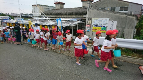 15日(金)大潮の日に、潮干狩りで有名な五主海岸へ振興局のバスで行きました。朝から雨が降っていましたが、午後にはピタリと雨が止み、潮干狩り日和となりました。海の家の方々やお家の方々にお世話になって、潮が引いた干潟でマテ貝やはまぐりをとりました。しばらくすると、マテ貝とりの名人になっている子もいました。ありがとうございました。
