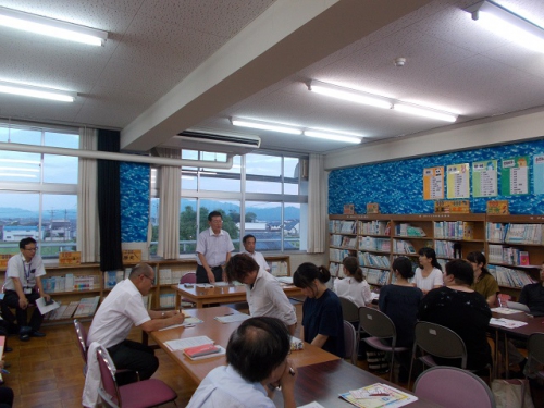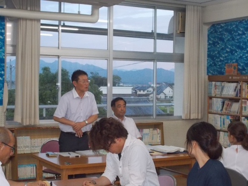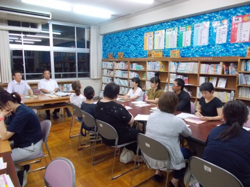 7/10(火)に鵲小図書室で市長・教育長と語る会がありました。PTAの役員さん、委員さん、会員さん10名と教職員5名が出席しました。途中で近隣のボヤ騒ぎがありましたが、午後9時前まで熱心に竹上市長・中田教育長に日頃の思いを投げかけました。市のトップと直接会って意見や質問できる機会はそんなにないからと仕事の後、足を運んで参加していただきました。学校でも修学旅行の費用など検討していかなければならない課題もありました。