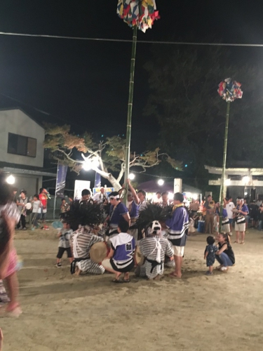 夏休みも残り一週間を切りました。9月3日(月)には全員が元気に登校しましょう! みなさんにとってはどんな夏休みでしたか?  最後まで気を抜かず、体調を崩したり、事故にあったりしないよう気をつけましょう。今回の画像は8月14日に行われた笠松の「かんこおどり」の様子です。海雲寺をスタートし、在所をまわって、松養寺、海雲寺でおどりを行いました。伝統のおまつりです。児童もたくさん参加しておまつりを盛り上げてくれていたようです。