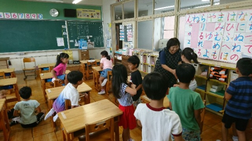 夏休みがあけました。二名の転入生を迎えて児童数99名になりました。朝は読み聞かせボランティア(コミュニティ・スクール)の方4名に来ていただきました。終了後お礼の握手をしました。帰りは一斉下校で、ブラジルからの転入生の兄弟をみなさんに紹介しました。早く日本になれるようみなさんの協力をお願いします。明日9月4日は台風21号が接近するため臨時休校とします。5日は安全を十分に確認して、登校しましょう。