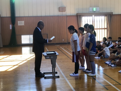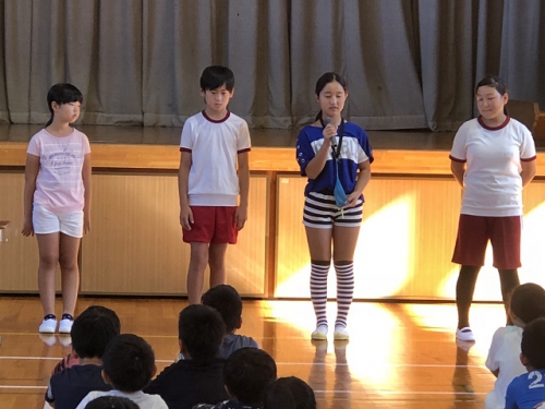本日後期がスタートしました。新たな気持ちでいろんなことにチャレンジしてほしいと思います。児童会の役員や委員長、各学級のリーダーも決まりました。前期のふりかえりをもとに、後期の学校生活をどのように過ごすか、それぞれが目標をもって「かささぎのわたせる橋」をめざしてがんばりましょうと話をしました。後期はたくさんの行事があります。さらに協力し合って、よい思い出をつくっていきましょう。