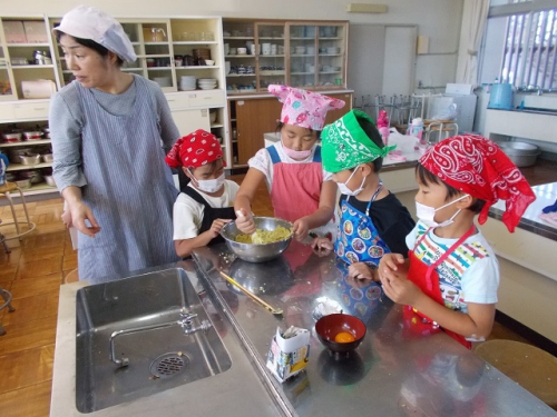 1年生は9月17日に掘ったサツマイモでスイートポテトを作りました。栄養教諭の横田先生にも手伝ってもらって家庭科室で作りました。ふかしたサツマイモの皮をむいて、一生懸命つぶしてこねました。さらに砂糖やバターを加えて、形を整えてオーブンで焼きました。とってもおいしかったですよ。原田先生が揚げてくれたサツマイモチップスも絶品でした!収穫したサツマイモの一部を草分先生に北海道の茶内第一小学校に送ってもらいました。北海道はサツマイモがとれないんだそうです。さっそくお礼のお手紙と立派なカボチャ3個が茶内第一小学校から届きました。カボチャは学校の畑で作ったものだそうです。茶内第一小学校のみなさんありがとうございました。これからもよろしくお願いします。いただいたカボチャを図工の時間に描きましたよ。