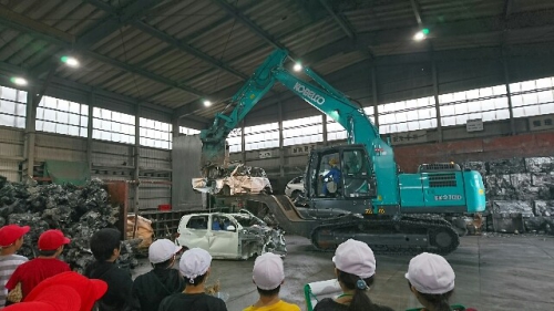 本日五年生は、社会見学で鈴鹿に行ってきました。三重パーツでは、車の解体や部品などのリサイクルの様子を見学しました。最後に三重パーツさんで、お土産をいただきました。4時に学校へ無事に帰りました。社会見学では本田技研鈴鹿工場、三重パーツのみなさんには大変お世話になりました。そして、中原小学校の5年生のみなさんに大変仲良くしてもらいました。ありがとうございました。