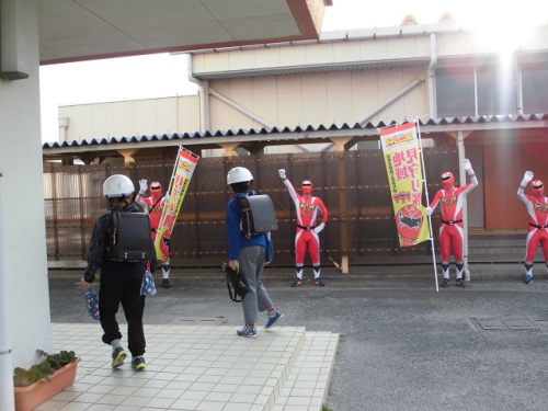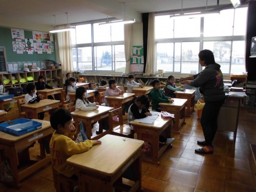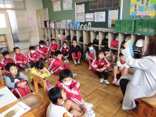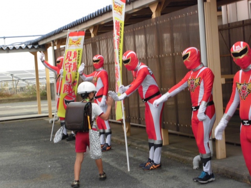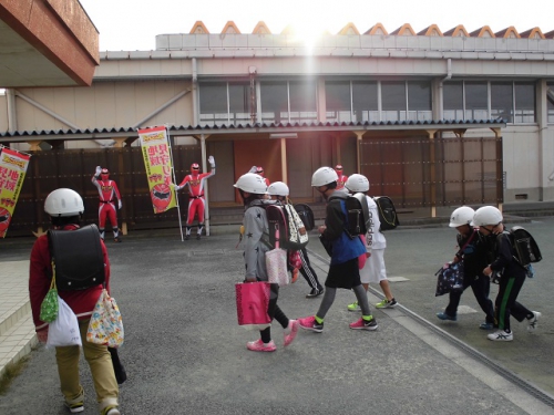 立冬が過ぎましたが、比較的穏やかな朝を迎えています。そんな中、早朝より、赤レイジャイのみなさんがこどもたちの出迎えに来てくれました。松阪北部商工会青年部の方々です。日頃からこどもたちをあたたかく見守っていただいていることに感謝です。大きな声であいさつができると嬉しいですね。また、今日はコミュニティ・スクール推進委員会読書活動部の方に来ていただいて1~3年生に朝の読み聞かせをしてもらいました。2年生は広告で折ったミニクジャクをいただきました。こどもたちのために様々な工夫をしていただいています。まだインフルエンザで欠席の児童も少しいます。引き続きしっかりと予防しましょう。