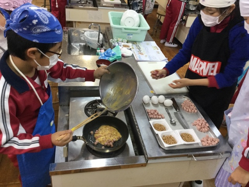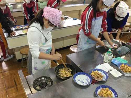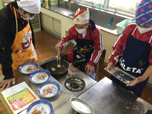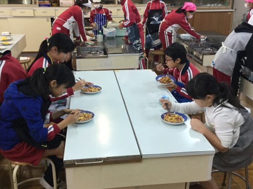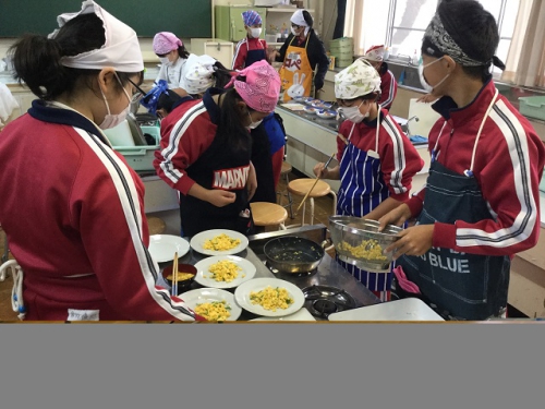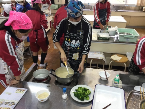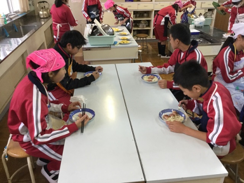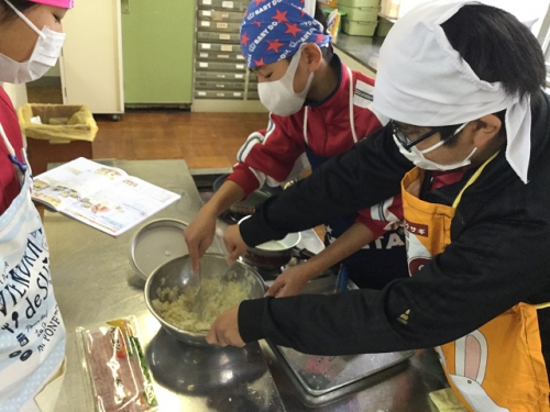 ホーム > 日々の活動の様子 6年生調理実習 6年生は班でメニューを考えて調理実習を行いました。さすがに6年生になると包丁さばきも鮮やかですね。どの班の調理もとてもおいしそうに見えましたよ。五大栄養素をしっかりとり入れてメニューを考えました。家庭でも積極的に調理に関わっていきましょう。 タグ:2018年度 シェアする Twitter でシェア はてなブックマークに保存 LINE でシェア Facebook でシェア Pocket に保存 Feedly で購読 関連投稿 日々の活動の様子 4年生食教育 日々の活動の様子 6/14(金)PTA給食試食会 日々の活動の様子 6年 パーティーを楽しむ 日々の活動の様子 朝の登校風景 日々の活動の様子 1年サツマイモの苗うえ センダンの花 日々の活動の様子 三雲文化祭開催中 前の投稿 第2回鵲わくわく仲間集会 次の投稿 しょうゆもの知り博士出前授業