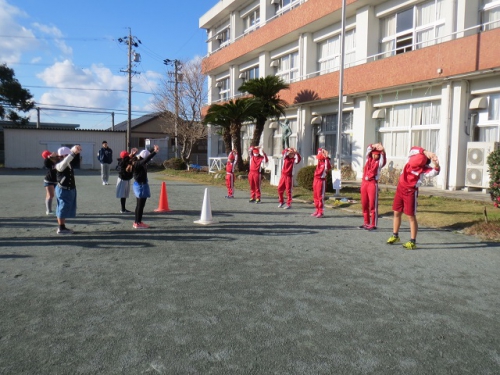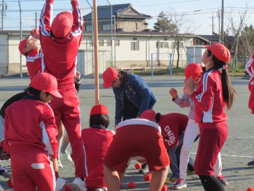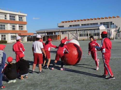 12月14日のことですが、5・6年生は自分たちで企画して、水泳25m泳げた記念パーティーを行いました。内容は開会式、大玉転がし、玉入れ、障害物リレーなど企画・運営など自分たちで全て行いました。校長先生役の6年生もいたようです。6年生の実行力を5年生に引き継ぐためのひとときでもありました。