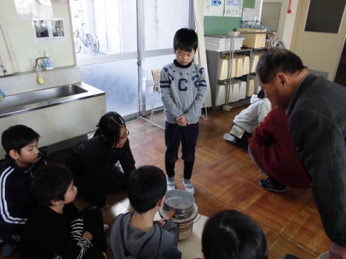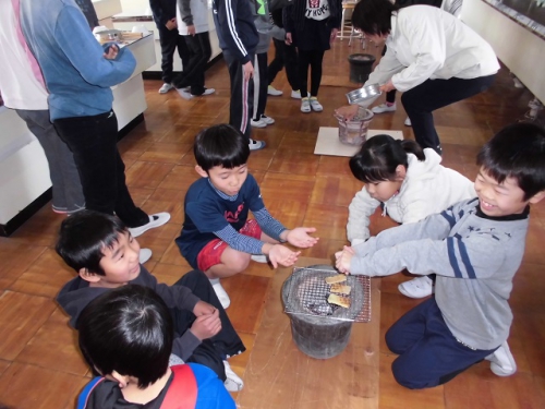 3年生は「むかしのくらし」の学習で地域の方に来ていただいて、炭火であられを煎ったり、焼いたりしました。ちょうど今の時期は旧暦のお正月にあたり、むかしはお正月をこの時期にしていたようです。おもちをついて食べたり、あられを作ったりする時期であったそうです。あられはとても芳ばしくて、懐かしい味がしました。家のあられ煎り器を貸してくれた子もいました。ありがとうございました。