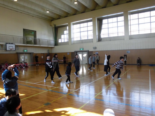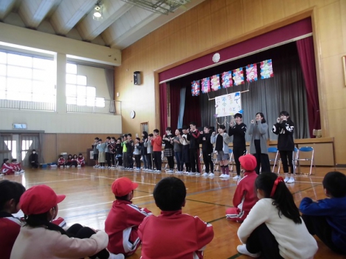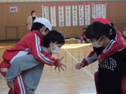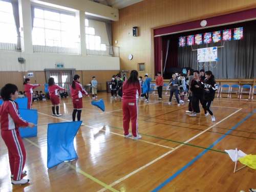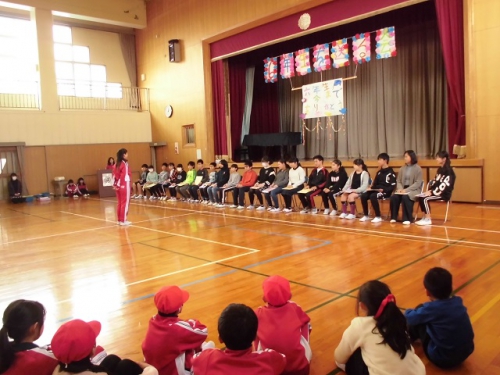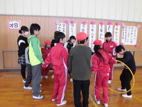 今日は5年生が中心となって、6年生を送る会を行いました。今まで児童会の行事は6年生に頼り切っていましたが、今日は6年生はお客様。5年生は企画から運営、そして出し物まで頑張ってやりぬきました。各学年が工夫をこらした内容で6年生と共にゲームや運動を楽しみました。5年生の出し物の「甲子園」では突然6年生が小さい青いフラッグを持って立ち上がり、参加してきました。これには5年生もビックリでした。レインボー班でのゲームの後、お礼のメッセージを伝えました。6年生からは手話付きの「翼をください」の合唱があり、最後は花道を作って6年生一人ひとりを送り出しました。別れの時がせまってきています。