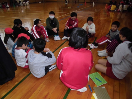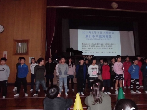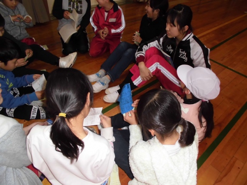 今日は5限目に児童会によるわくわく仲間集会を行いました。後期の児童会の活動を締めくくるものでした。4人の児童会役員さん大変よくやってくれました。6年生から伝統を受け継ぎ、さらによい学校にしていきましょう。次に4年生がメヌエットとラバーズコンチェルトを合奏してくれました。次に3・4年生が東日本大震災の映像を背景に「花は咲く」を歌いました。今年も3.11が近づいています。そんな思いを込めて毎日練習してきた歌で、とても気持ちがこもっていました。その後、レインボー班に分かれて、活動を振り返ったり、6年生からメッセージをもらったりしました。いよいよ別れがせまってきています。