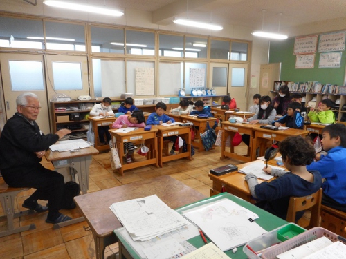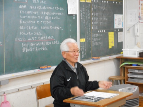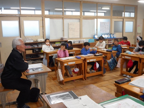 3年生はむかしのくらしの学習で見回り隊の高瀬さんに来ていただいて、鵲地区には3つのピンチがあったことを話していただきました。3つのピンチとは戦争、1944年12月の東南海地震、1953年9月25日の台風13号襲来です。3つ全てを経験されている方が次第に少なくなっていく中、高瀬さんや野田さんのお話しを後生に語り継ぐことが鵲地区を好きになることにつながっていくと思いました。東日本大震災が起きた3月11日が近づいてきました。過去のできごとから自然の驚異を肝に銘じて、いのちを守っていく取り組みを続けていかなければなりません。