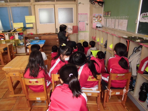 今日は朝の学習の時間に三雲おはなしの会から3名の方に来ていただいて、1~3年生に読み聞かせをしていただきました。三雲おはなしの会は本年度最後の読み聞かせになるので、読み聞かせ終了後お礼を言わせてもらいました。来週の月曜日はコミュニティ・スクール推進委員会読書活動部の読み聞かせさんに来ていただきます。