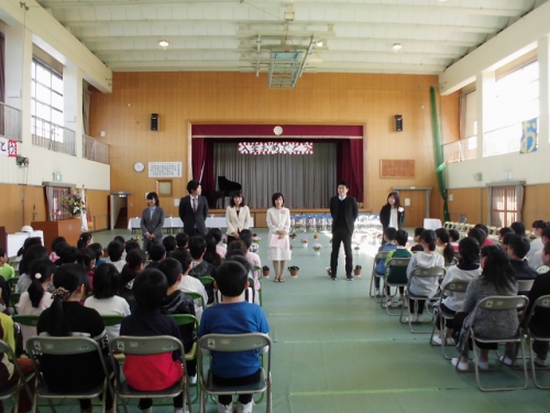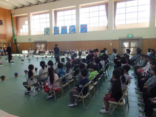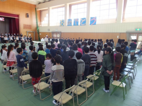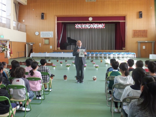 新学期がスタートしました。着任式、始業式、入学式を実施しました。22人の新入生を迎えて、鵲小学校の児童数は101人になりました。今日は全員が登校しました。明日から1年生も集団登校となります。最後に新入生教室で、見回り隊の方々を紹介しました。元気に登校してください。