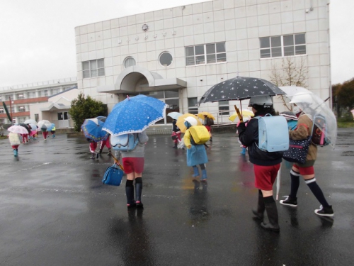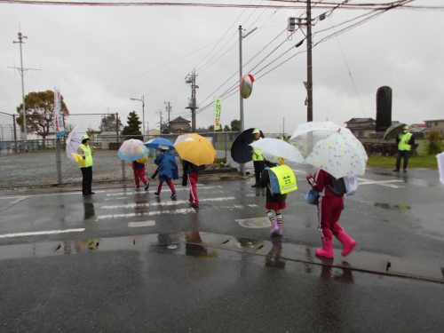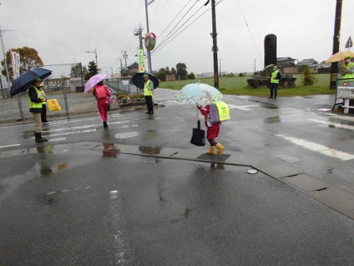 9日に通学集団を持って、1年生も含めて全員で通学団のルールを確認しました。子どもたちが安全に元気に登校できるか、通学団のはたらきはとても大きいです。また、見回り隊のボランティアの方々のお世話になります。今日は雨の中、1年生もがんばって登校しました。