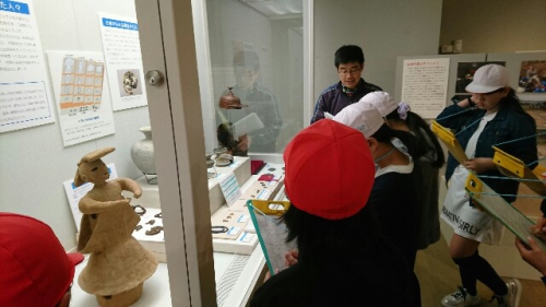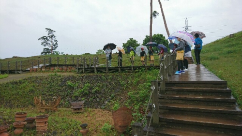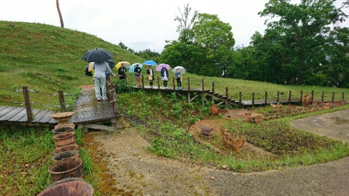 今日は午後から校外学習で、松阪市文化財センターはにわ館と宝塚古墳公園に振興局のバスに乗せてもらって行ってきました。はにわ館では、縄文時代から古墳時代までのくらしについてや、宝塚古墳や様々なはにわについて講師の先生から学習しました。その後、実際に宝塚古墳に登ってきました。市内が一望できる古墳の大きさにあらためて驚いて帰ってきました。雨中説明していただいた学芸員さんありがとうございました。これからの学習にしっかりと生かしていきます。