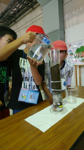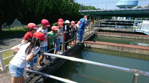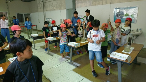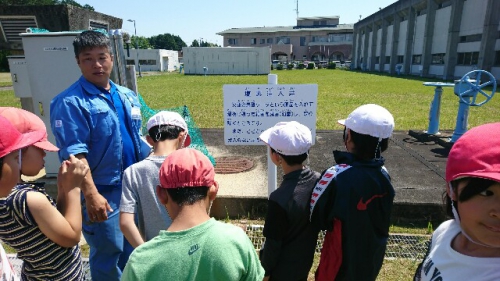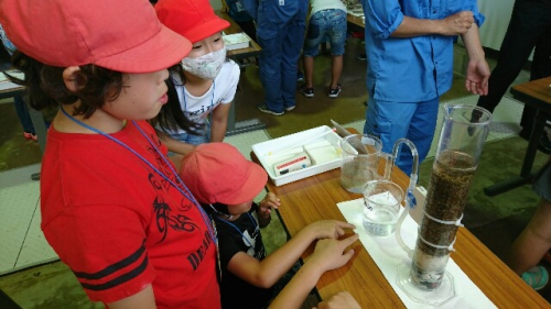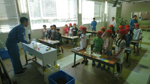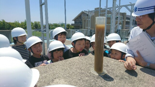 4年生は全員で振興局のバスに乗って津市一志町にある高野浄水場に社会見学に来ました。最初にビデオで説明を見たあと、川の水をろ過する実験をさせてもらいました。こどもたちはよごれた水がきれいになっていくようすにおどろいていました。次の見学地の松阪浄化センターに無事に到着しました。
