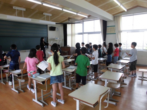 今年度は5月の授業参観を授業のみで実施しました。今朝は1年生から3年生までは三雲おはなしの会の方々に来ていただいて、読み聞かせをしてもらいました。1年生は初めてでしたがどうでしたか。6年生は1限目に中学校から先生に来てもらって、iPadを使った出前授業をしてもらいました。また、2限目以降は日本人の英語指導助手の活動の様子を見てもらいました。担任の授業等日頃のお子さんの様子を見ていただけたと思います。参観ありがとうございました。