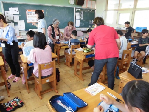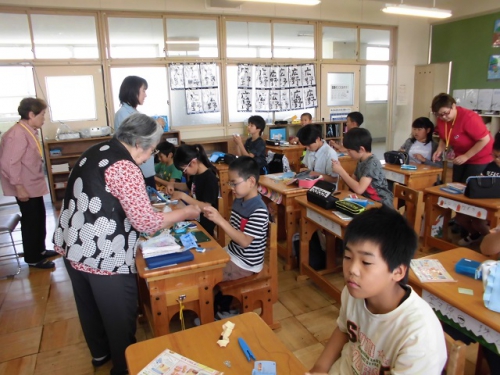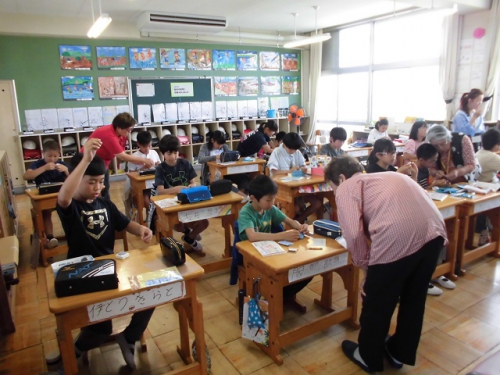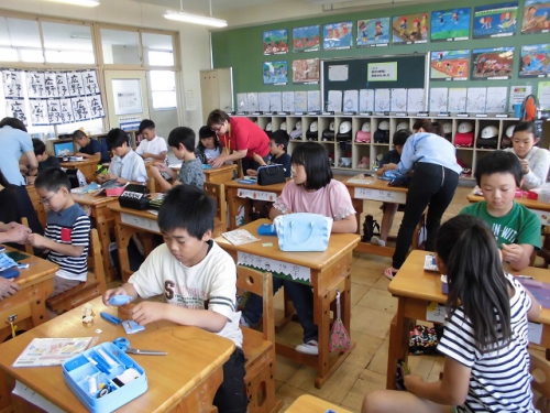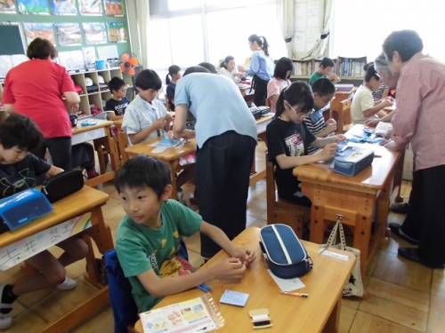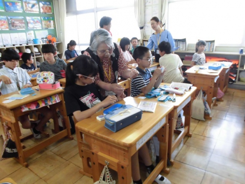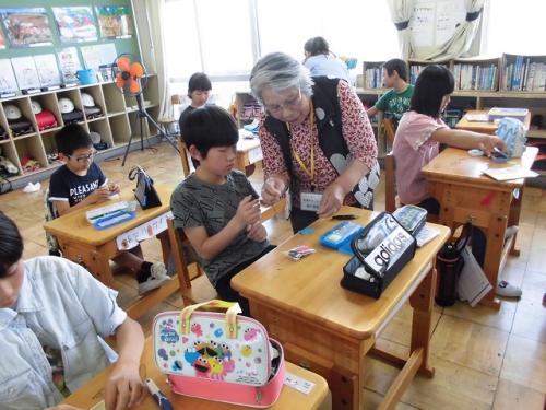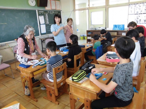 今日の5年生家庭科裁縫の授業でコミュニティ・スクール学習サポート部の方々に来ていただいて、裁縫の基本について支援をしていただきました。長年の経験から針と糸を巧みに操って、玉どめや玉結びをされる姿に子どもたちは見とれていました。うまくできたかな。今身につけておけば一生役に立つと思います。次はミシンに挑戦です。