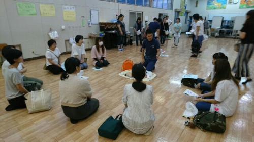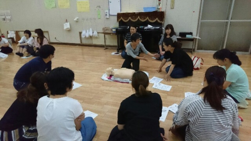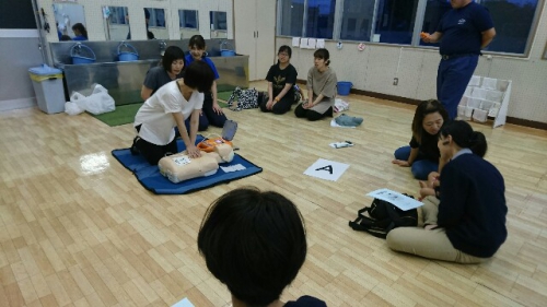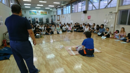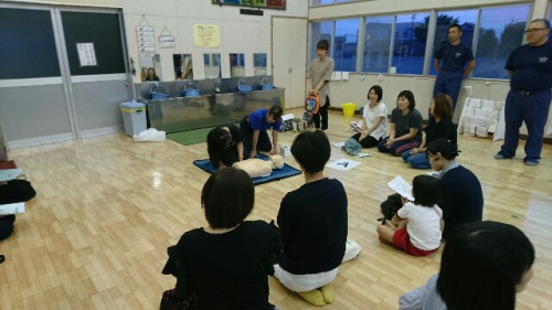 7月4日(木)PTA保健体育部が夏休みの自由水泳に向けて心肺蘇生法の講習会をランチルームで実施しました。松阪消防署三雲分署から講師に来ていただき、わかりやすくていねいに教えていただきました。参加した保護者のみなさんも真剣に実技指導を受けていました。あらためて、命の大切さ、命を守ること、自分の命も人の命もかけがえのないものであることを感じました。講習会終了後PTA委員会を行いました。