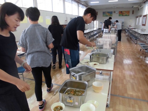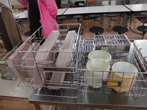 北部給食センターの給食が9月3日(火)から始まります。嬉野・三雲の幼・小・中の給食が作られ、各校・園に配送されることになります。本格実施の前にデモ給食が行われました。28日のメニューはてづくりハンバーグ、そえやさい、和風ポトフに青菜ごはんでした。できるだけ温かい物は温かく、冷たい物は冷たく食べられるよう、食缶などの容器が工夫されているそうです。高機能の食器洗浄機で洗うため食器や食器入れが工夫されています。試食会に参加された方もいることでしょう。安全にスムーズに給食が実施できるようしていきます。