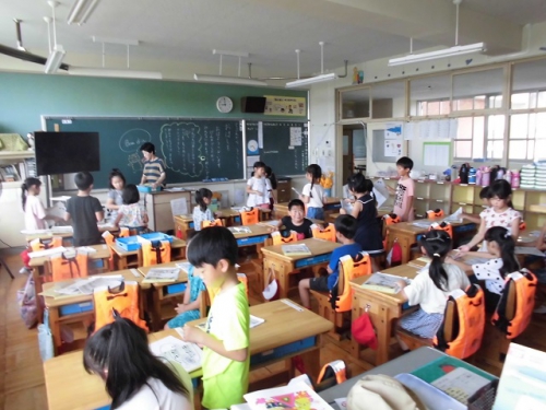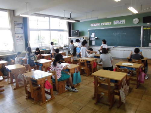 44日間の夏休みが終わり、ほとんどの児童が宿題を持って登校しました。各教室では担任の先生に宿題を提出したり、夏休みのできごとを報告したり、久しぶりに友だちと教室で遊んだりしていました。各教室にエアコンをつけてもらったので、さっそく運用が始まりました。子どもたちが快適な環境の中で学校生活が送ることができることに感謝します。