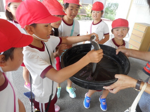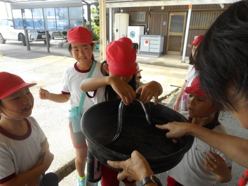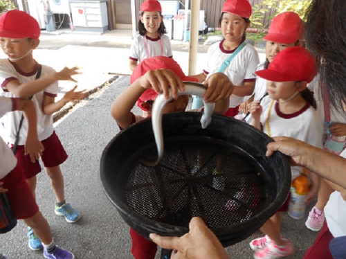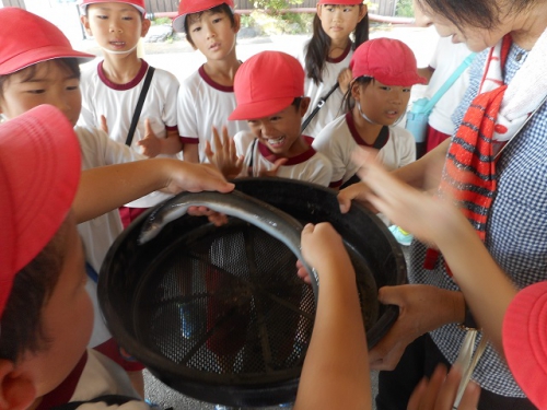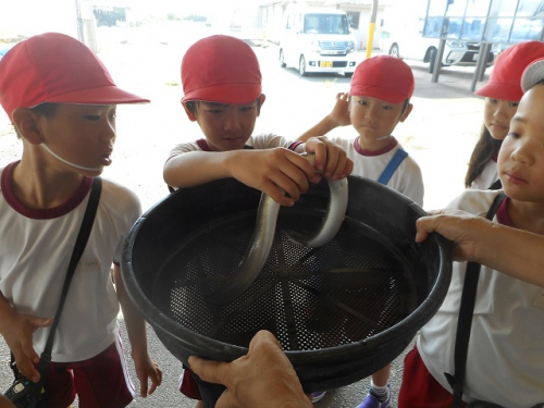 2年生は4日朝から生活科の授業「町たんけん」で学校の近くにあるうなぎの養殖場に行ってきました。養殖池から集めたうなぎを選別して出荷する様子を見せていただきました。子どもたちはうなぎをつかませてもらって大喜びでした。この地区は昔からうなぎの養殖が盛んで、養殖池がたくさんあったそうです。貴重な体験をさせていただきありがとうございました。
