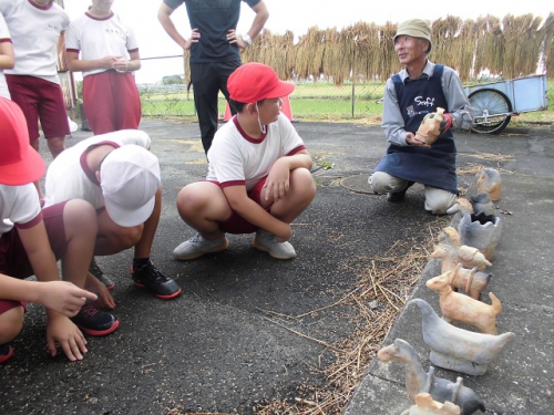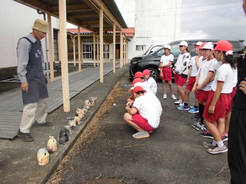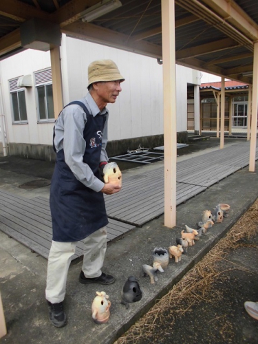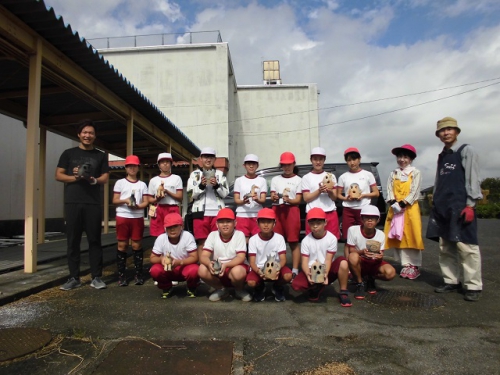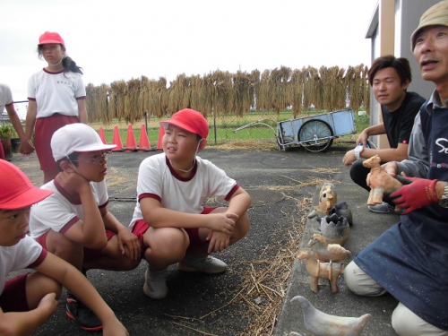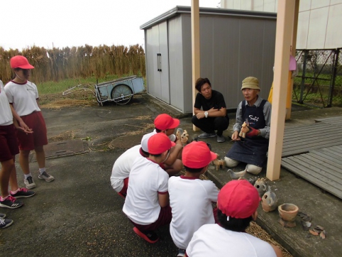 4日からドラム缶の中で蒸し焼きにしたはにわが焼き上がり、松阪市はにわづくりの会の方に来てもらって、ドラム缶から取り出しました。はにわは様々な色合いに焼き上がり、たたくとキンキンと高い音がしました。想像以上にうまく焼き上がったようで、子どもたちも喜んでいました。