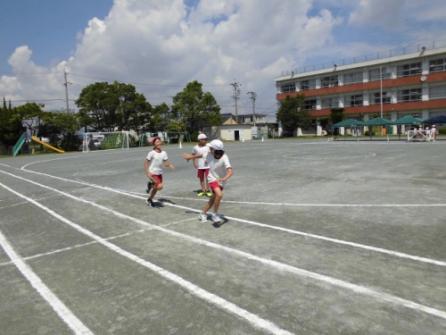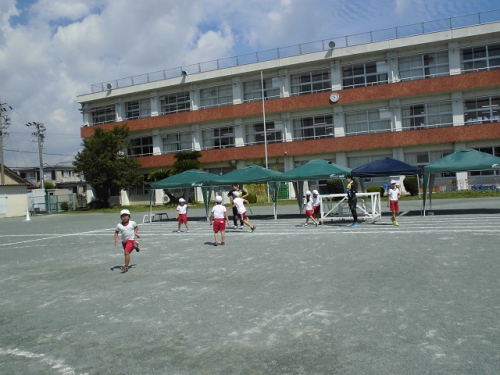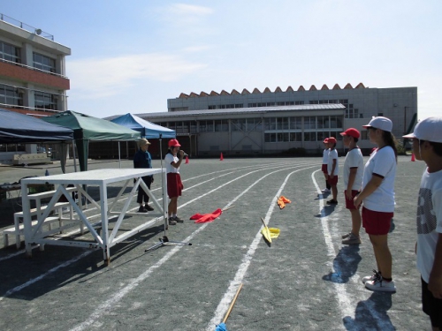 今日は1限目から、運動場で開閉開式の全体練習を行いました。朝から気温は急上昇したので、あまり長い時間練習はできませんでしたが、上級生がてきぱきと動いてよい練習ができました。休み時間にはリレーの練習をしているチームがありました。できるだけエアコンの効いた涼しい教室で身体を冷やしています。