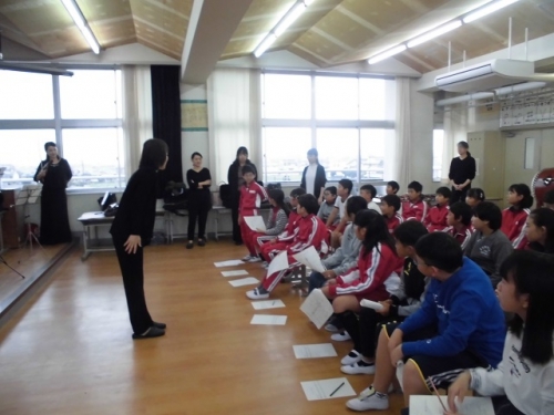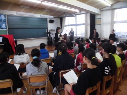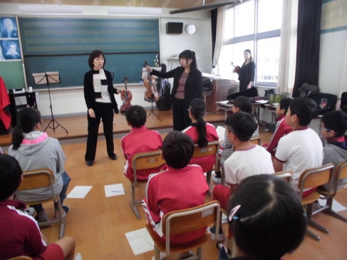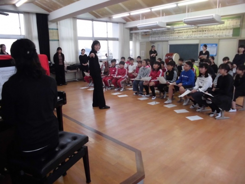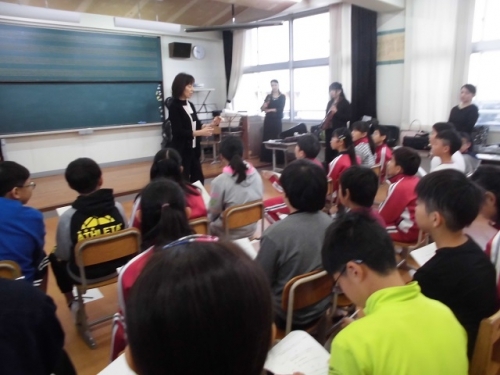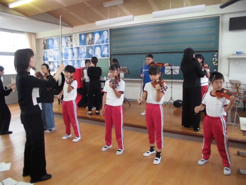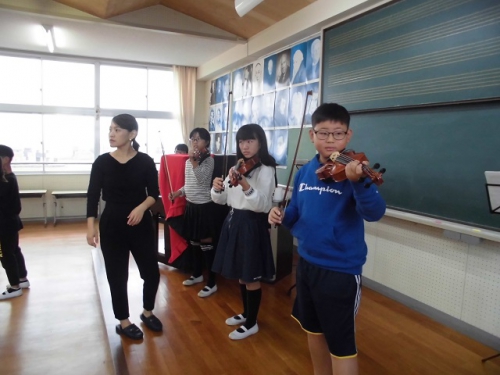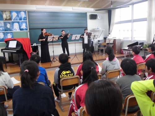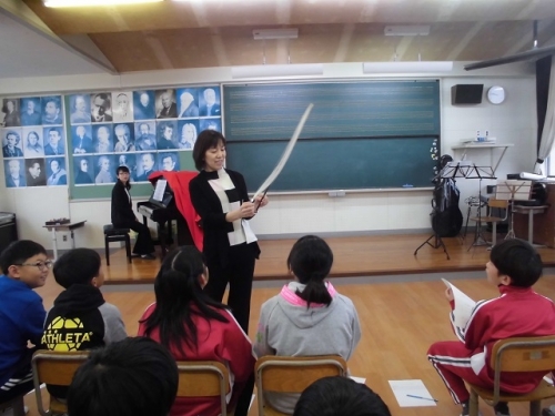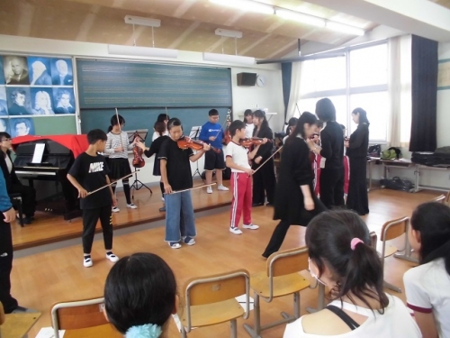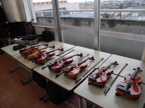 今日は三重県生涯学習センター事業で、弦楽器奏者に来てもらって、弦楽器について学んだり、実際にバイオリンに触れ、演奏体験を楽しみました。本物のバイオリンを目にしたり、演奏することが初めての児童がほとんどで、みな目を大きく見開いて話を聞いたり、演奏を聴いていました。バイオリンとビオラの違いや、弓の構造を知りました。文化の秋にふさわしい弦楽器体験となりました。ありがとうございました。
