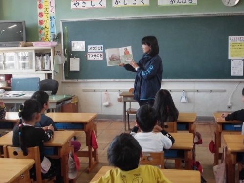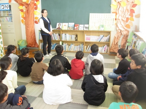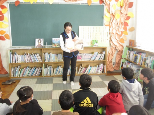5年生は学校司書に国語でも学習する椋鳩十さんの作品についてブックトークをしてもらいました。椋鳩十さんの本名や、飼い猫のことや、戦争中殺された犬の話などとても興味深く話されました。作者の人柄や思いも考えて、書かれた本に興味を持つことって大切だなと思いました。子どもたちは真剣な眼差しで話を聴いていました。6日は担任以外の朝の読み聞かせ2回目を実施しました。おすすめの本や話など少しでも本に興味を持ってもらえたら幸です。