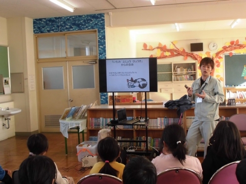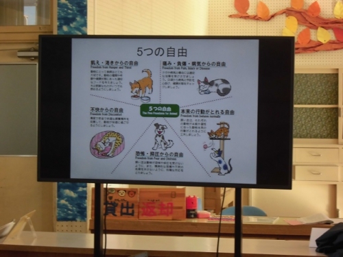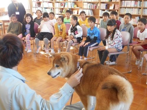 12日5限目に2年生は「あすまいる」の方に来ていただいて、動物愛護教室をしてもらいました。犬は一度に何匹子どもを産むのかを聞いて、子どもたちは驚いていました。飼い主が守らなければならない動物の「5つの自由」を知りました。また実際に犬の心臓の心音を聞き、いのちの大切さを感じることができました。飼う以上は飼い主には責任があります。山羊のメイカも大切にしていかなければなりません。