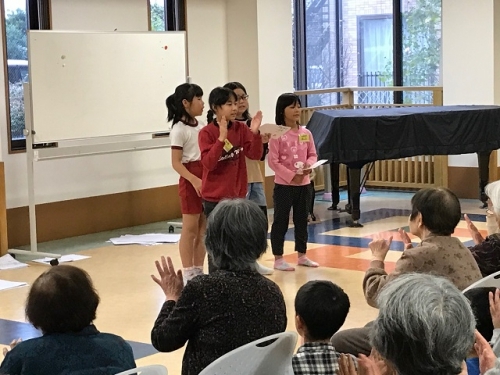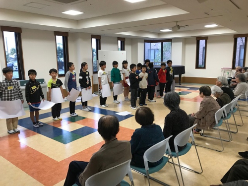 4年生は6月に続いて今年2回目の訪問に行ってきました。前回から5ヶ月が経ち、子どもたちの成長した姿を見てもらえたようです。子どもたちの考えた出し物を吉祥苑の皆さんはとてもあたたかく迎え入れてくれました。画像を見ると子どもたちも、吉祥苑の皆さんもとてもよい表情をされています。全てお見せすることはできないのは残念ですが、やさしさをいっぱい発見できた訪問となりました。ありがとうございました。