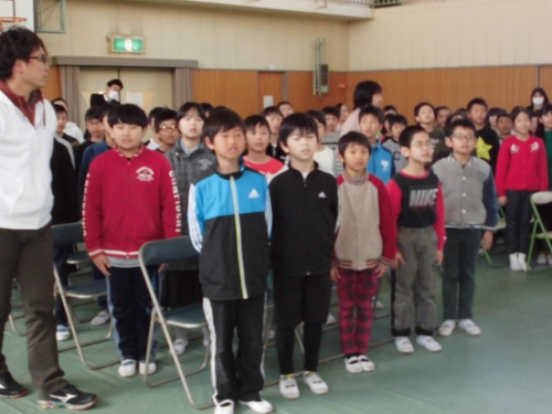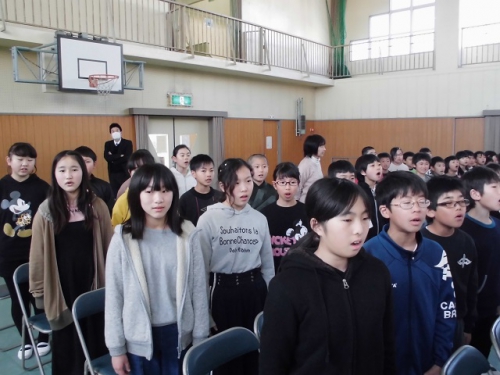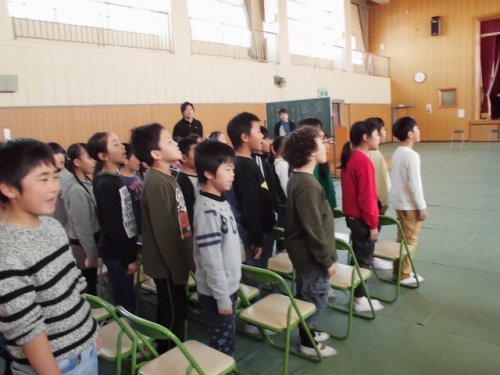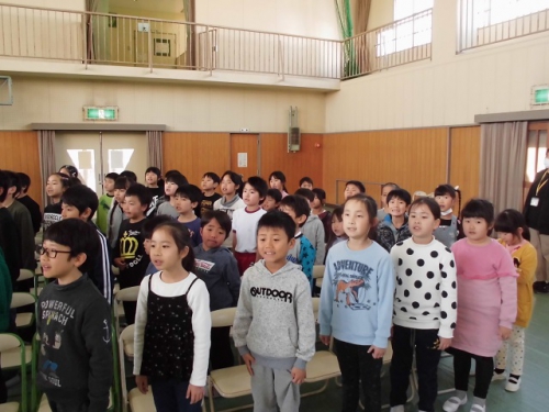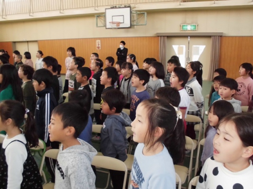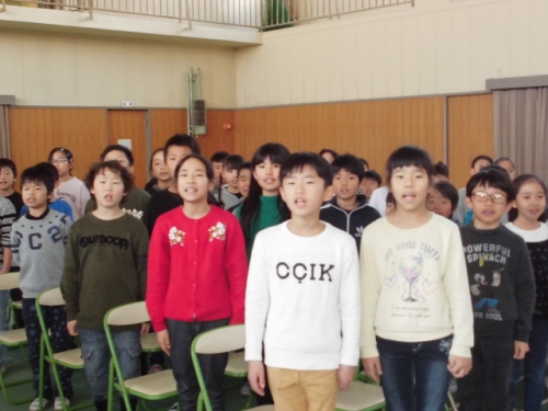 在校生が卒業式に向けて練習しています。式歌は「きみに会えて」 気持ちを込めて、大きく口を開いて声を出して歌うように指導して練習しました。お世話になった6年生へ感謝の気持ちを込めた歌声が心に届くようがんばります。いよいよお別れの時がせまってきました。