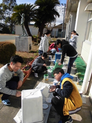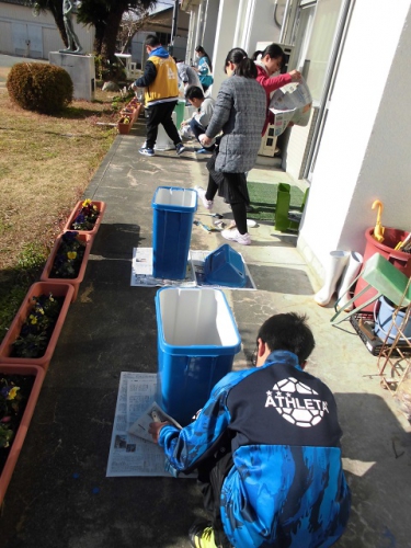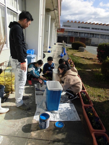 ホーム > 日々の活動の様子 下級生への贈り物 6年生は卒業まであと2ヶ月あまりとなりました。天気の良い日に職員室の前で、下級生への贈り物を製作していましたので写真を撮りました。どんな贈り物ができるのか楽しみですね。風でペンキが飛ぶので、服が汚れないよう気をつけていましたよ。 タグ:2019年度 シェアする Twitter でシェア はてなブックマークに保存 LINE でシェア Facebook でシェア Pocket に保存 Feedly で購読 関連投稿 日々の活動の様子 4年生 第二吉祥苑訪問Ⅱ 日々の活動の様子 明けまして おメーでとうございます。 日々の活動の様子 通学団集会と登校の様子 日々の活動の様子 授業の様子 1年音楽 3年図工 日々の活動の様子 6年生 はにわ完成 日々の活動の様子 ランチルーム窓ガラス強化 前の投稿 1・2年生カルタ取り 次の投稿 三雲おはなし会読み聞かせ