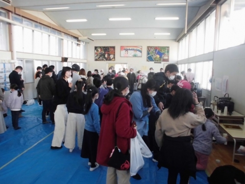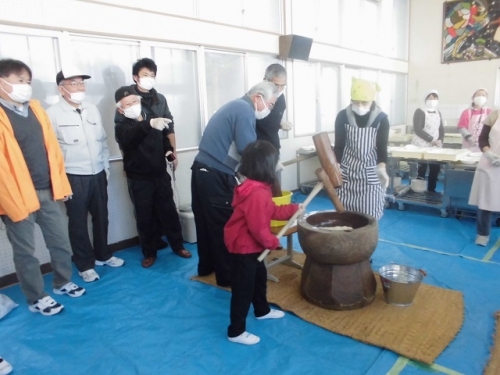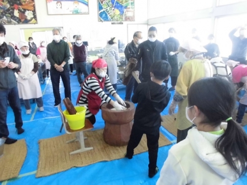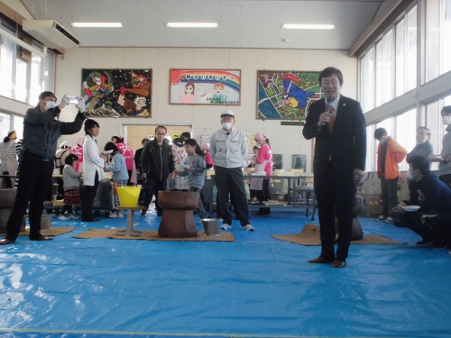 今日は鵲まちづくり協議会 青少年育成部会主催のふれあいもちつき大会が学校のランチルームで行われています。地域の方が準備をされて、子どもたちが家族と大勢参加しています。最近は滅多に家庭ですることのない、うすときねを使った本格的なお餅つきを体験させてもらいました。また、会場にはもち米を蒸す良いにおいがたちこめていて、五感でお餅を味わうことができます。また、ゲームや抽選会も用意されているようです。しっかりと楽しんでください。市長さんも駆けつけていただきました。地域の皆様ありがとうございました。