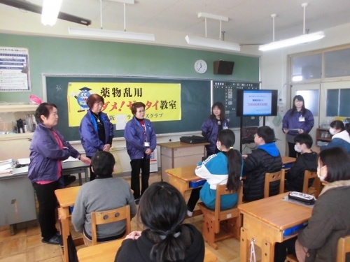 今日は松阪花しょうぶライオンズクラブの方々に来てもらって、薬物乱用防止について話をしてもらいました。違法薬物は一回だけの使用でも乱用となります。将来誰かから薬物をすすめられたとき、きっぱり・はっきりと断れるようしっかりと知識を身に付けておきましょう。