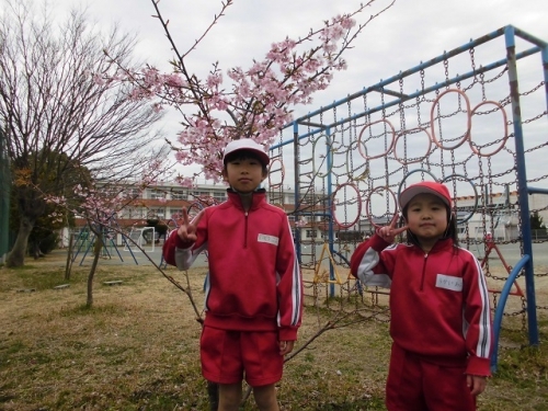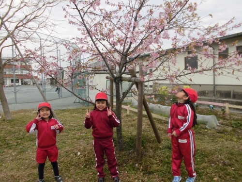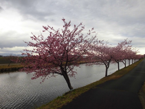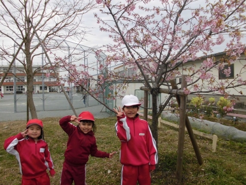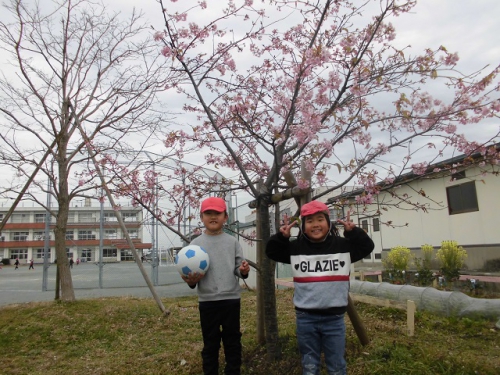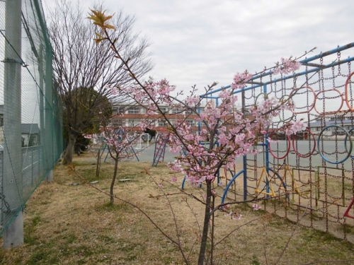 学校から見える笠松河津桜ロードの桜もかなりはっきりとしたピンク色になってきました。しばらくは桜鑑賞が楽しめます。学校の河津桜も満開に近づいてきました。昼休みに遊んでいる1、2年生を呼んで写真を撮りました。1年生が卒業する5年後も見事に咲いてくれるように学校の河津桜も大切にしていきましょう。26日朝の河津桜ロードの画像もつけました。327本あると数えた人から聞きました。