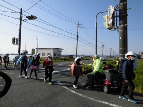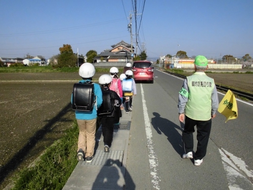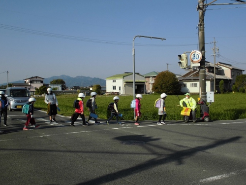 7日から1年生も通学団で元気に歩いて学校に来るようになりました。交通の要所には見回り隊の方が立ってくれていたり、遠い道のりを学校まで共に歩いてくれています。本当にありがとうございます。見回り隊は常時募集しておりますので、協力いただける方は学校までお知らせください。