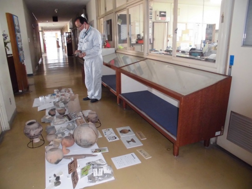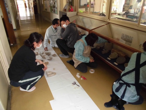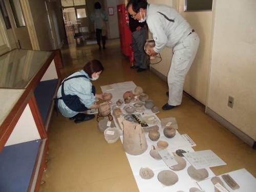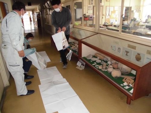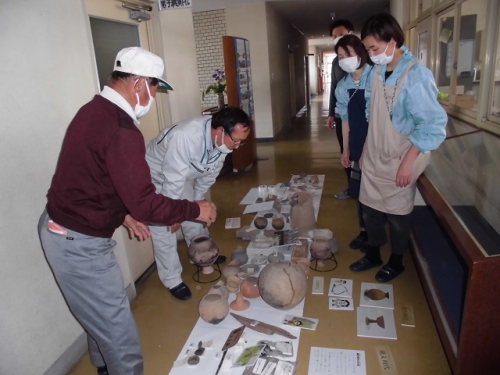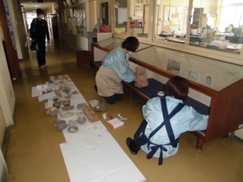 松浦武四郎記念館に貸し出していた、鵲小学校の文化財コレクションが返却されました。新しく収納ケースを1つ用意して、3つのケースに古い年代から並べ直してもらいました。松阪市文化財センターの方々にも大変お世話になって、とてもきれいに展示できました。地域の方がとても大事にされてきたものです。これから考古学に興味をもって学習に役立てていきましょう。