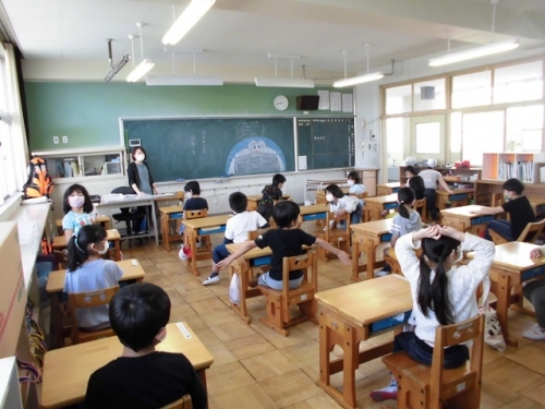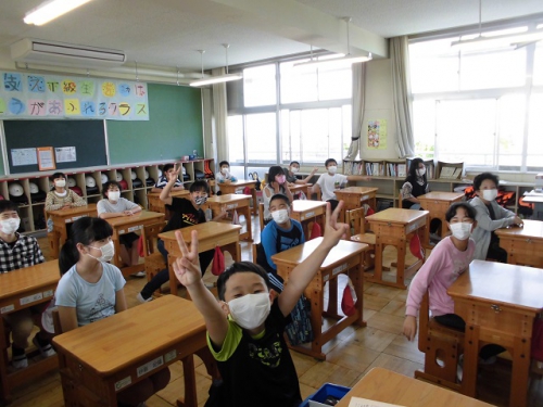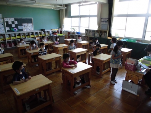 松阪市内の小中学校では、予定より早く、今日から学校を再開しました。子どもたちは通学団で少し緊張した表情で学校に来ました。久しぶりにともだちに会うと、嬉しそうに遊びが始まりました。運動場ではマスクをつけて、ソーシャルディスタンスを保って遊ぶ子どもたちの姿が見られました。今日は児童全員が学校に来ました。保護者の皆様のご理解・ご協力に感謝します。今週は2限授業後10時40分に通学団別下校となります。運動場と図書室は平日13時~15時まで開放します。