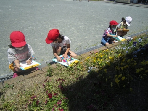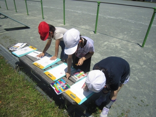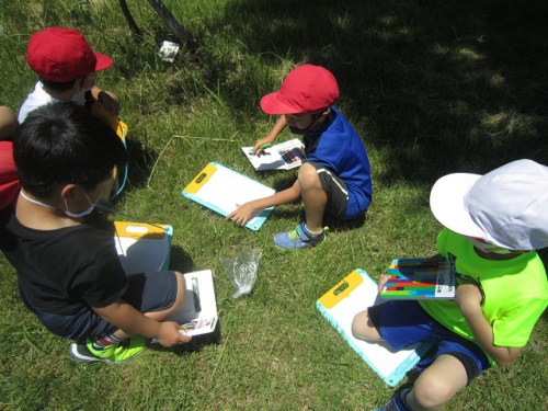 2年生は生活科の時間に外に出て、運動場の周辺で「春」を探しました。学校休業のため、春探しがずいぶん遅くなってしまいましたが、子どもたちは一生懸命「春」を探して、見つけたものを絵に描いていました。「かささぎの森」では山羊のメイカが柵の外に出ていたので、イチョウの葉っぱをあげると喜んで食べていました。季節は春から夏へ、2年生も入学から1年以上が経って大きく成長しました。