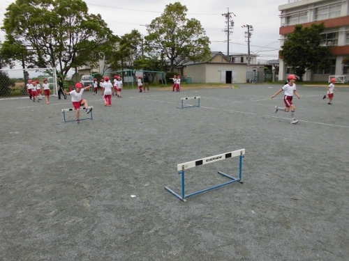 6月1日から平常授業となり、今日から給食後のお昼休み、掃除、午後の授業等が始まりました。1年生も一生懸命掃除や午後の授業に取り組んでいました。4年生は5限目の体育の授業でにハードル走の練習をしました。休業中運動をする機会が減り、運動不足だったかも知れません。少しぎこちない走りの人もいましたが、走る喜びを感じてとても嬉しそうに見えました。